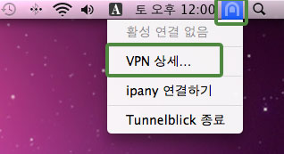 VPN 연결 로그를 확인하여 접속 실패 원인을 파악할 수 있습니다. 로그를 확인하려면 메뉴 막대의 Tunnelblick 아이콘을 클릭하고 "VPN 상세"를 선택합니다.